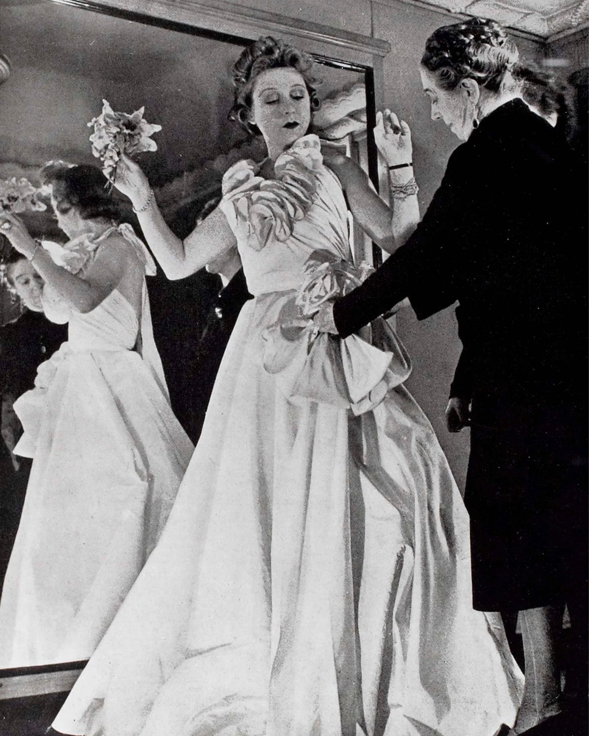 Jeanne Lanvin at a fitting with Yvonne Printemps, circa 1936 - © DR / Patrimoine Lanvin.