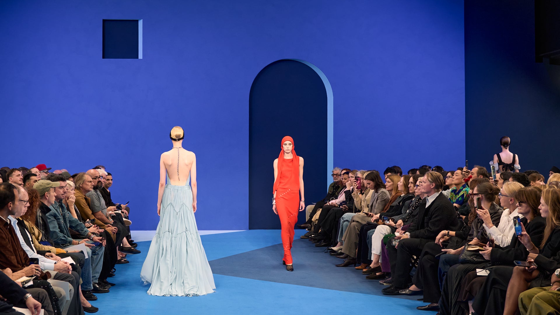 The universe of Lanvin Blue came to life in Lanvin's Summer 2026 show. Artistic Director Peter Copping extrapolated the maison’s signature hue into a full spectrum — at once deep, luminous, and unexpected. Immersed in this chromatic landscape, guests experienced a collection where history and modernity converged in new expressions of elegance.​
